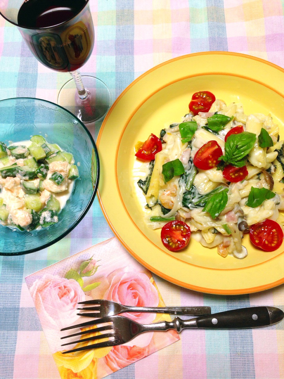 と、胡瓜(サイコロ切り)、クリームチーズを明太子であえただけ・・・